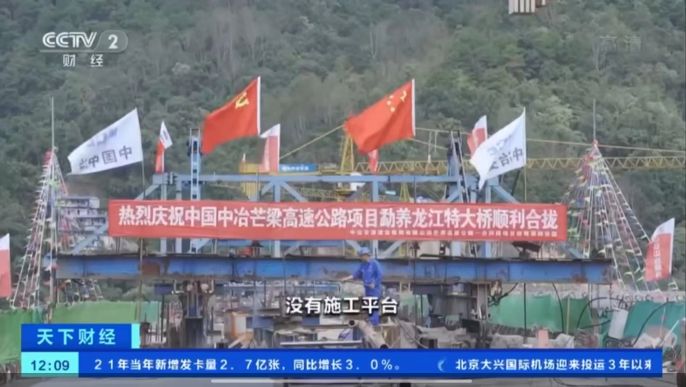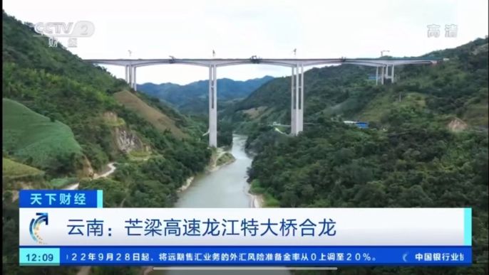 经中冶集团党委宣传部策划沟通,9月25日央视财经频道(CCTV-2)对中冶交通芒梁高速公路项目勐养龙江特大桥合龙施工节点给予现场拍摄,并于26日午间在《天下财经》栏目喜迎党的二十大专题给予特别展映。此次宣传展映充分彰显了中冶人作为国家基本建设主力军先锋队,以优质工程建设能力推进“滇西一体化”发展,优化区域路网布局,改善边疆民生福祉,向党的二十大胜利召开献礼!
